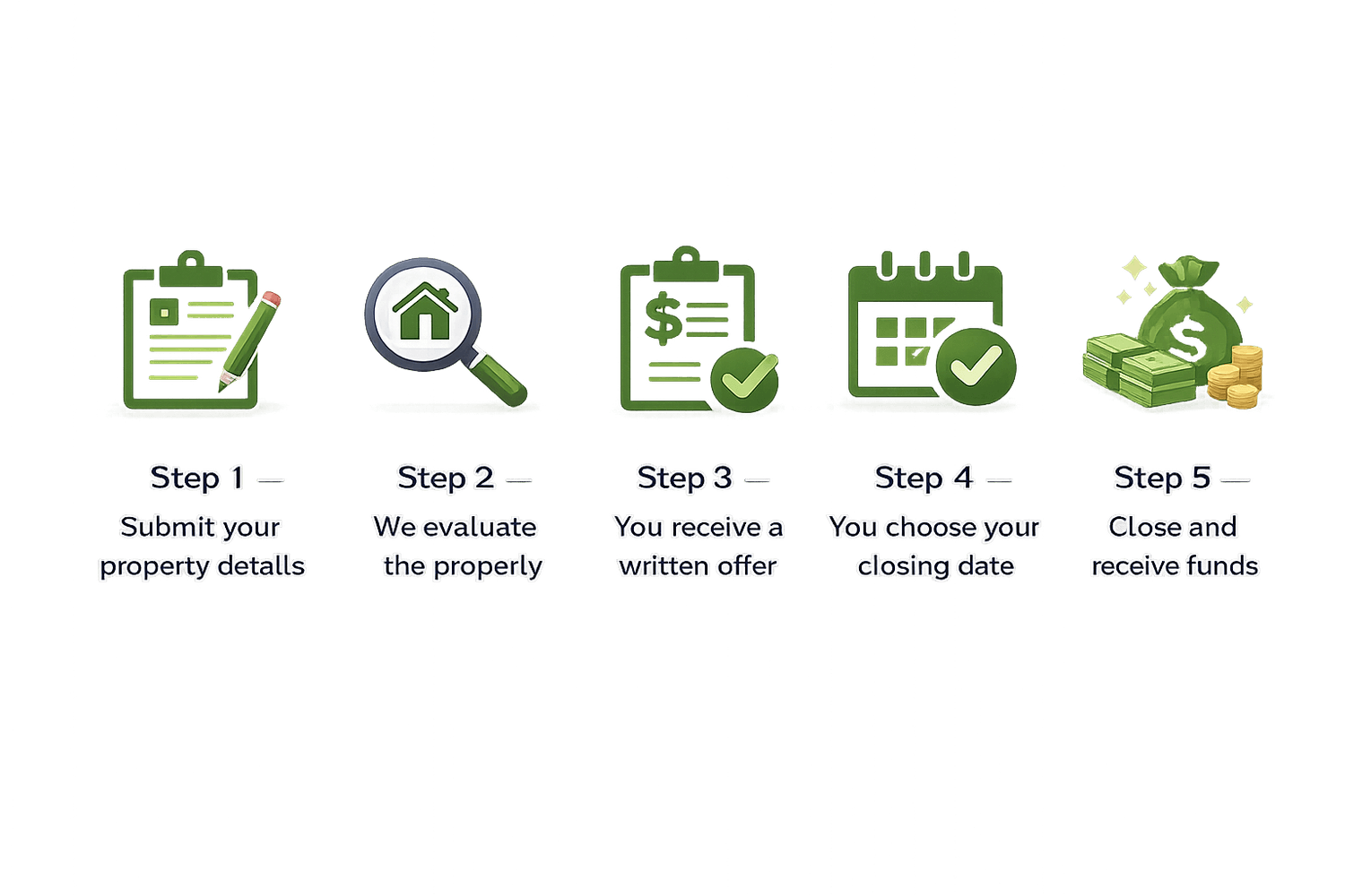We typically purchase homes that need repairs, inherited properties, vacant houses, or situations where the owner needs to sell quickly.